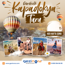 Kapadokya Turu (Günübirlik) Her Hafta: Cumartesi, Pazar çıkışlıKalkış Saati: 08:00Kalkış Yeri: Aksaray Park Site AVM (Burger King Önü) ▪️GEZİLECEK YERLER;Yeraltı Şehri (Giriş Ücretlidir.)Güvercinlik VadisiUçhisar Kalesi (Panoramik)Onyx Değerli Taşlar AtölyesiGöremeATV Safari Turu (Yaklaş..